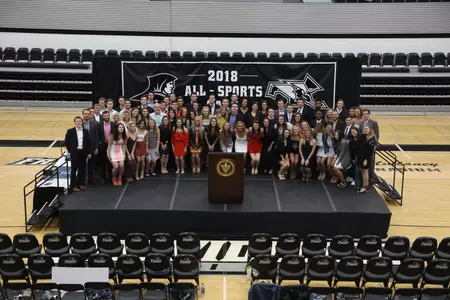Providence College honored its top student-athletes at the 57th Annual All-Sports Gala on Monday, April 30. The ceremony was held at Alumni Hall/Mullaney Gymnasium on the campus of Providence College in Providence, R.I. A social preceded the event in `64 Hall. Earlier in the evening, the athletic department also honored its 2017-18 letter winners in a brief ceremony. The gathering of more than 300 student-athletes, coaches and staff members celebrated another successful year in Friartown.